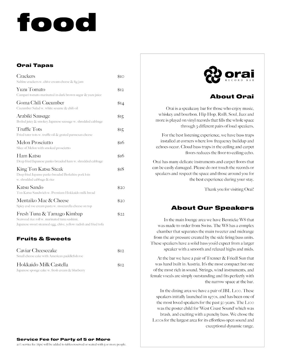 Whether you’re stopping by for a casual drink, a bite to satisfy late-night cravings, or a relaxed meal with company, the menu at Bar Orai balances approachable flavors and thoughtful preparation, supporting the venue’s inviting and laid-back vibe.