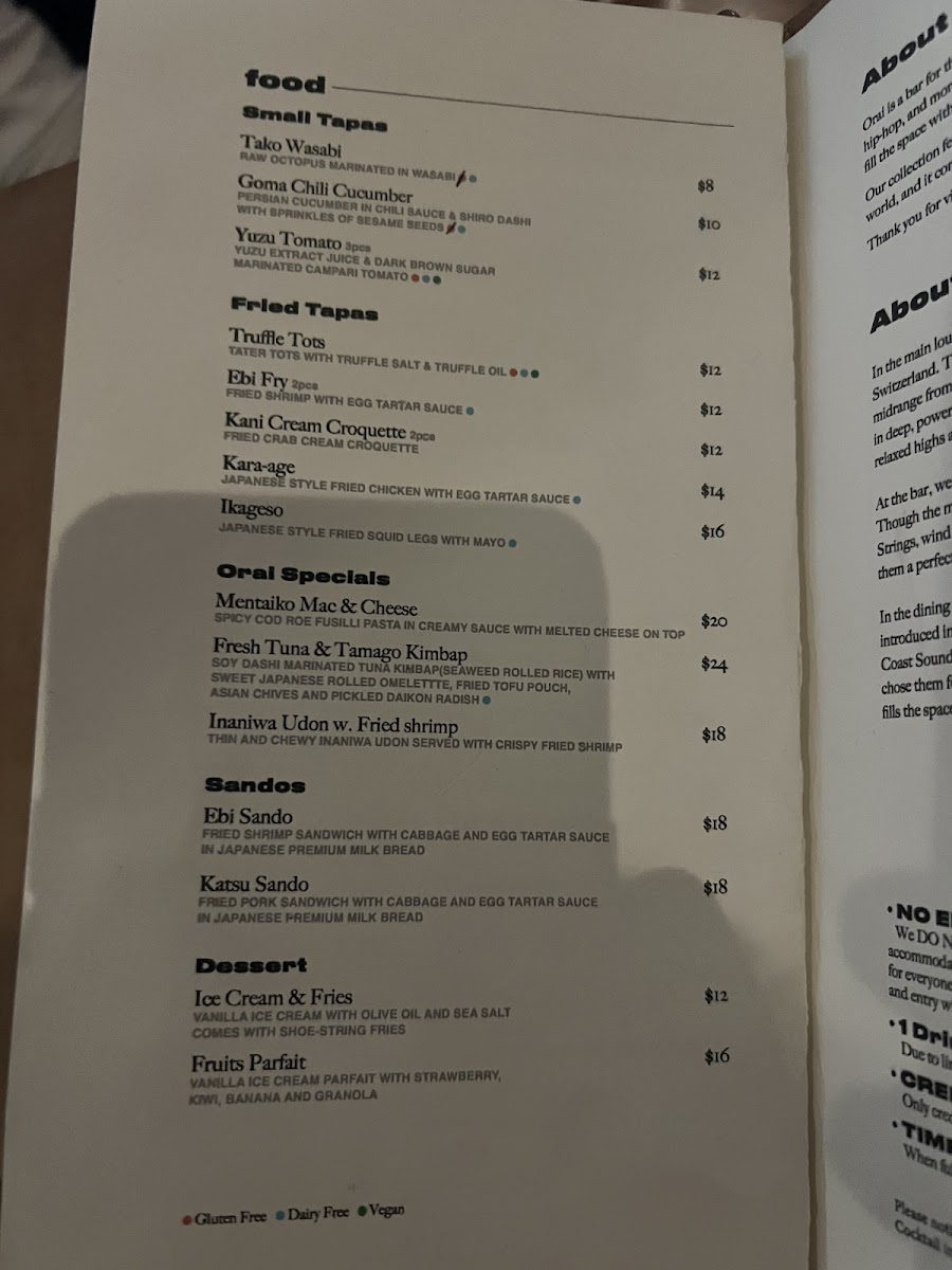 Bar Orai offers a thoughtfully curated menu that blends casual, comforting bites with carefully crafted drinks, perfect for an easy evening out. The food features a mix of flavorful small plates with an Asian-inspired twist—think crispy katsu sandwiches, creamy and spicy mac and cheese, and savory croquettes—all designed to share or enjoy between sips.